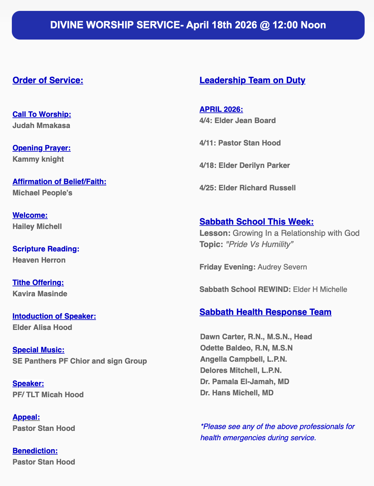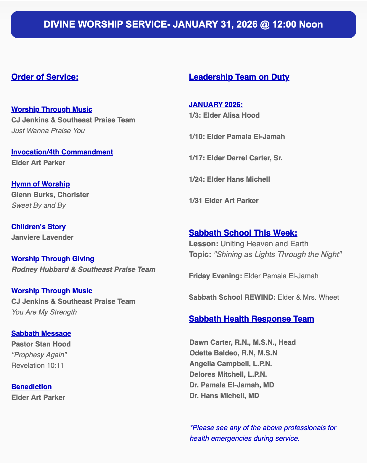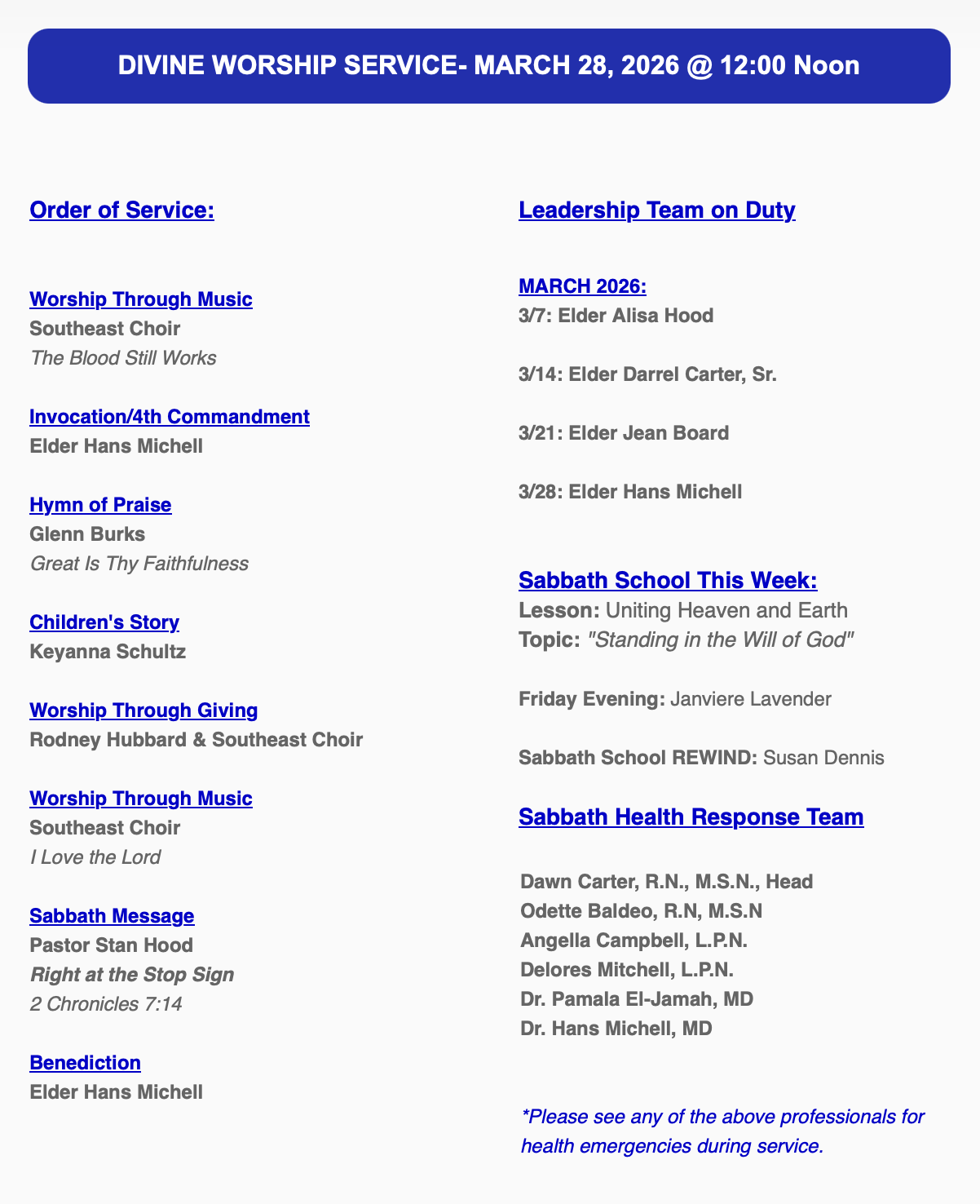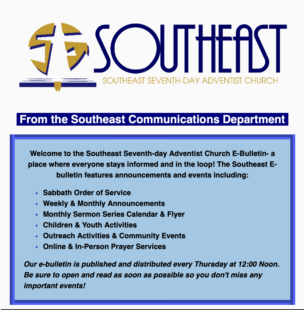 What’s Happening at Southeast SDA Church This Week? Announcements are updated here… Read More